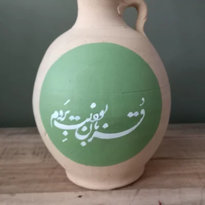 کوزه سفالی دکوری با طراحی خوشنویسی