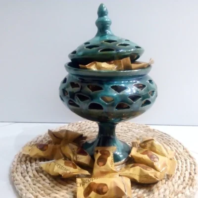 ساخت سفال در ایران دارای سابقهای طولانی و درخشان است. با توجه به موقعیت جغرافیایی خاص کشور ایران، که در محل تقاطع تمدنهای باستانی و در مسیرهای کاروانهای مهم واقع است تقریباً در هر بخشی از ایران در زمانهای مختلف درگیر ساخت سفال بودهاند.اما امروزه ظروف سفالی حس و حال خوبی به دکوراسیون منزل میدهند. این کوزه سفالی ساختهی دست هنرمندان ایرانی که از خاک رس درجه یک ساخته شده است. متن طراحی شده (قربان بودنت بروم)